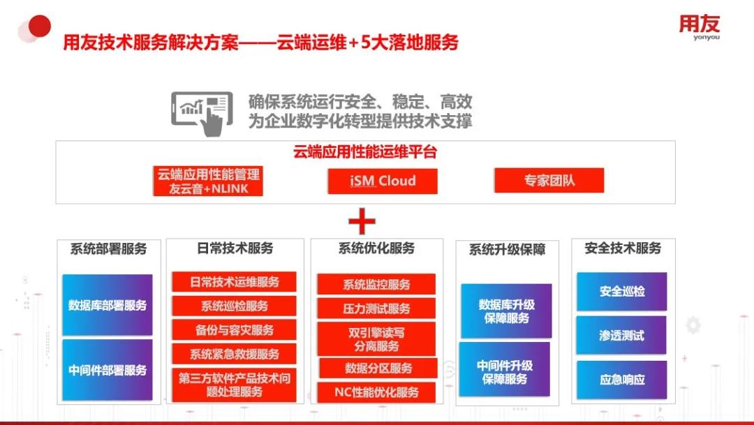 在企业数智运维转型驱动下, 企业技术支持正逐渐向业务支持进化,这其中,数字化应用性能监控起到关键的作用。用友技术服务解决方案,正是基于数字化应用性能管理平台,为企业数字化转型提供全方位的技术支撑与智能驱动。