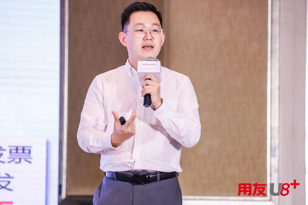用友U8+财税专家郑焕亮老师在大会上讲到,用友U8+专票电子化解决方案充分挖掘用友在企业服务市场多年积累的经验和能力,打通业务、财务、税务一体化处理流程,发挥专票电子化带来的数据驱动优势,帮助企业真正将发票为代表的数据资源利用起来。此外,U8+专票电子化解决方案不单单是为了帮助企业开出一张电子专用发票,更是帮助企业进行业务重塑,将企业内部各业务单元、企业间上下游业务协同重新组合,实现效率最高、成本最低、运营最优。